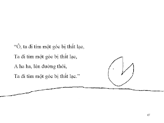 Hắn thiếu 1 góc, và hắn rất buồn về điều đó. Hắn bắt đầu đi tìm góc còn thiếu của mình. Hắn đi về phía trước, hát mấy câu hát thế nầy: